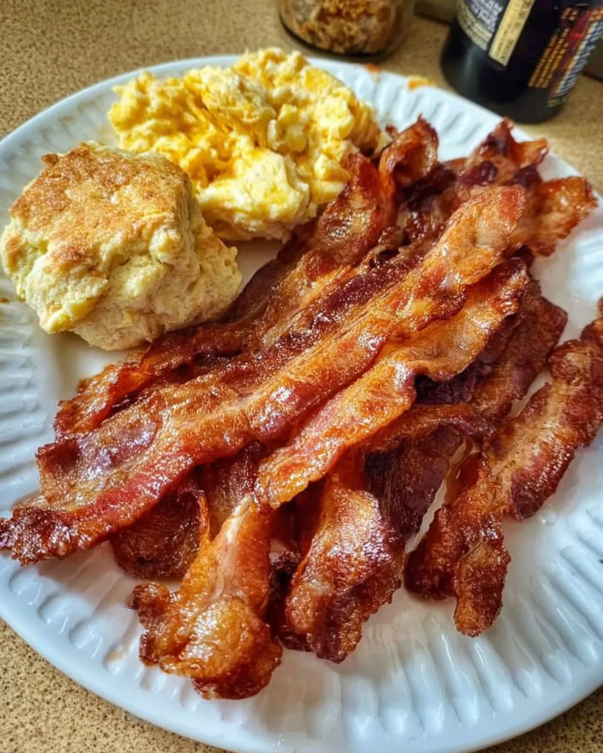 Bacon with Biscuits and Cheesy Scrambled Eggs is a classic breakfast that makes mornings wonderful. The crispy bacon, fluffy biscuits, and creamy, cheesy eggs come together to create a dish that satisfies everyone. Whether you enjoy it on a lazy weekend or need a quick breakfast on a busy weekday, this recipe is simple and delightful.
