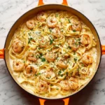 A creamy and rich pasta dish featuring tender shrimp and fettuccine, perfect for any occasion.