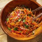 This carrot and beetroot salad is fresh, bright, and full of texture. It mixes sweet root veg with a sharp lemon and soy dressing. The seeds and herbs add crunch and color. This salad is a healthy version of a classic side. It feels light but gives fiber and good fats. If you like crisp salads, try it like a refreshing watermelon and mint salad for a cool contrast at the same meal. This dish is great for meal prep and works well as a lighter option for busy days.
