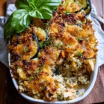 A hearty casserole combining juicy chicken, fresh zucchini, and cheesy goodness for a comforting meal.