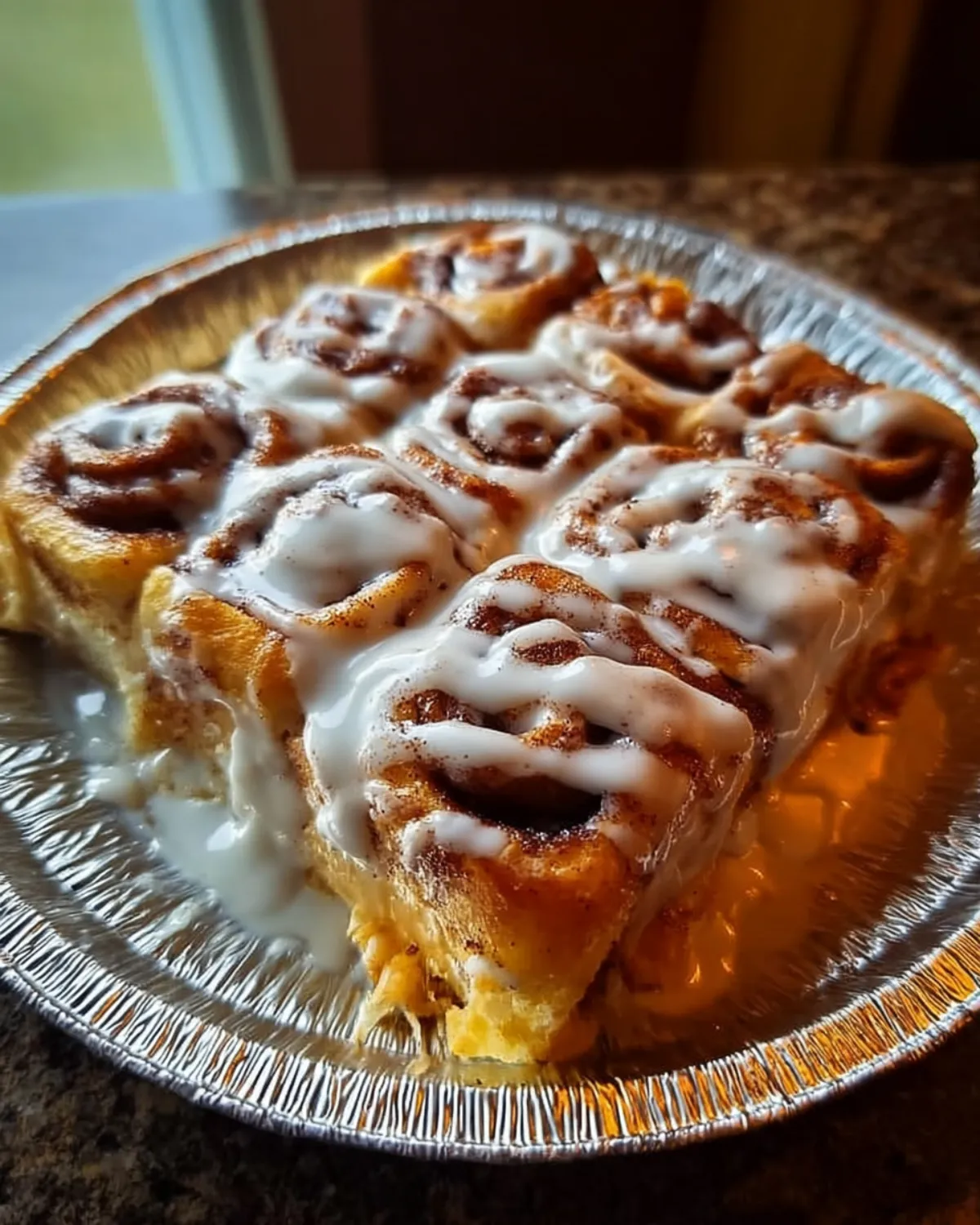 - Drizzle Icing: After baking, remove the pan from the oven using your oven mitt. Take the icing that came with the cinnamon rolls and drizzle it over the top while it is still warm.