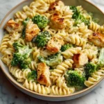 Creamy Rotisserie Chicken Broccoli Pasta is best served warm. You can enjoy it as is, but it pairs wonderfully with a side salad or some fresh, crusty bread. You can sprinkle extra Parmesan cheese on top for added flavor. A little sprinkle of fresh parsley can also make the dish look beautiful and add a hint of freshness.