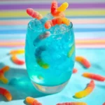 Serve this drink cold and bright. Use tall clear glasses so the colors and candy show. Add a few extra gummy worms on a small skewer across the glass rim. This looks childlike but is for adults only because of the alcohol.
