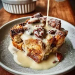 This recipe makes a warm, rich dessert that tastes like a cozy morning and a sweet dinner at once. The bread soaks up a mix of espresso, orange, eggs, and cream. The hazelnut vanilla sauce adds a soft, nutty finish. You can make it for a holiday table, a slow weekend, or when you want a special treat. If you enjoy bright fruit notes with baked sweets, you might like a simple orange boost in sauces like the cranberry sauce with orange juice that pairs well with this pudding.