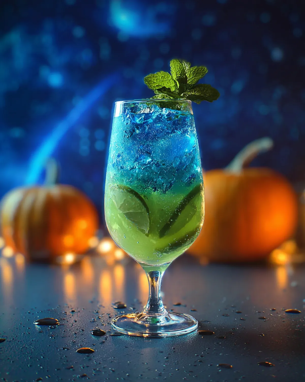 Keywords: refreshing drink, colorful beverage, party drink, Boo Moon, non-alcoholic drink