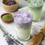 Keywords: matcha, lavender, iced drink, vegan beverage, refreshing drink