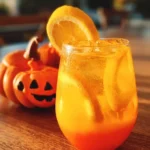 A fun and festive mocktail that combines orange and pineapple juice with sparkling water, perfect for Halloween gatherings.