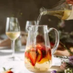 A light, floral twist on traditional sangria, combining white wine, brandy, lavender syrup, and fresh fruit for a refreshing drink.