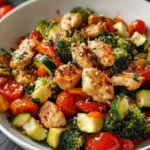 Loaded Chicken and Veggie Skillet is a simple meal that cooks fast and tastes bright. This dish mixes diced chicken with sweet peppers, zucchini, broccoli, and cherry tomatoes. The garlic and Italian seasoning give it warm, homey flavor. A light sprinkle of Parmesan makes the dish feel a little special without extra work. This meal fits busy nights when you want real food that is ready in under 30 minutes. If you like pairing chicken with grains, read more about healthy rice and grilled chicken for good side ideas.