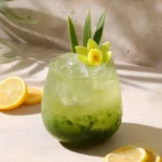 A fresh, light, and healthy mocktail made with matcha, pineapple, coconut water, and lemon.