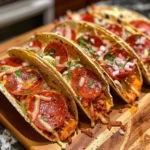Meat Lovers Pepperoni Pizza Tacos are the perfect fusion of two beloved meals: pizza and tacos. Imagine the bold flavors of pepperoni and Italian sausage wrapped in a crispy taco shell or soft tortilla. This dish is ideal for those nights when you want something fun, easy, and satisfying. It’s also a great way to please a crowd. Whether you are hosting a party or just looking for a simple dinner option, these tacos are sure to be a hit. The combination of hearty meat, gooey cheese, and zesty sauce will satisfy even the hungriest of appetites. Plus, they are customizable, allowing everyone to add their favorite toppings.