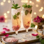 - Gently stir the drink before serving. For an extra layer of elegance, consider rimming the glasses with rose sugar!