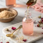 Keywords: rose syrup, simple syrup, floral sweetener, rose water, cocktails, desserts, homemade
