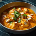 Garnish with flaked almonds and serve with basmati rice, naan, or poppadoms. The almonds add a crunchy texture that complements the creamy curry perfectly.