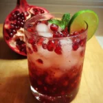 A vibrant and refreshing cocktail combining sweet pomegranate juice, zesty lime, and fresh mint, topped with sparkling water for a delightful fizz.