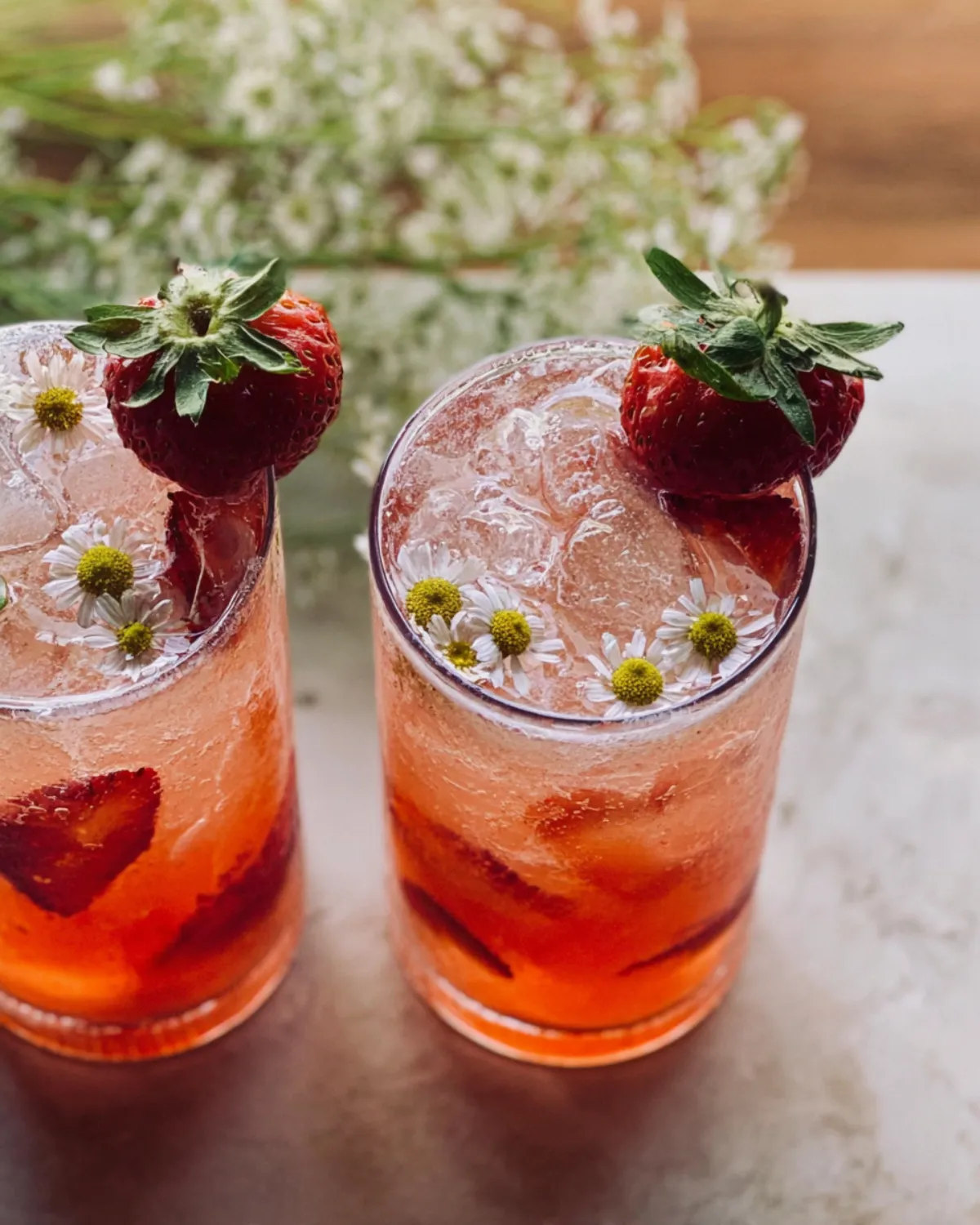 - Garnish with fresh chamomile flowers and extra strawberry slices, if desired. Serve immediately.