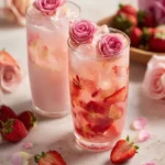 A delightful and refreshing drink combining rich strawberries and delicate rose syrup, perfect for warm days or special occasions.