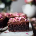 - Spread the ganache over the cooled brownies and decorate with rose petals if desired.